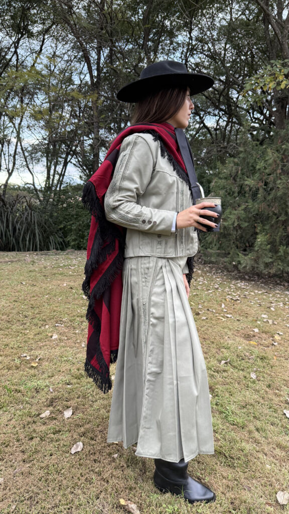 Traje de gaucho de dama con pollera pantalón tableada
