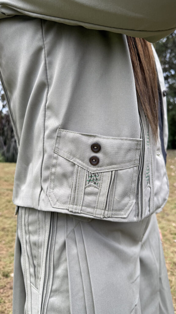 Confeccionado artesanalmente en gabardina alpacuna con nido de abeja bordado a mano, totalmente artesanal